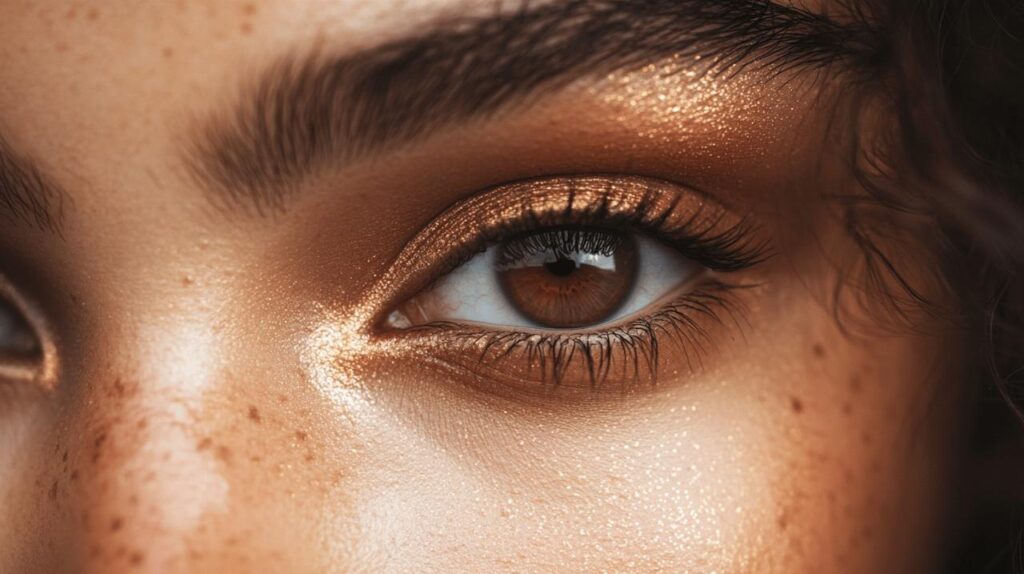 What makes the bronze smokey eye particularly versatile is how easily it transitions from day to night. For daytime wear, keep the deepest shades minimal and focus on blending for a soft effect. When evening approaches, intensify the look by adding more of the darkest bronze along the lash line and slightly beyond the outer corner. A touch of shimmer in the inner corner brightens the eyes, while a brown eyeliner smudged along the upper and lower lash lines adds definition without the harshness of black. Complete with volumising mascara to frame your enhanced brown eyes perfectly.